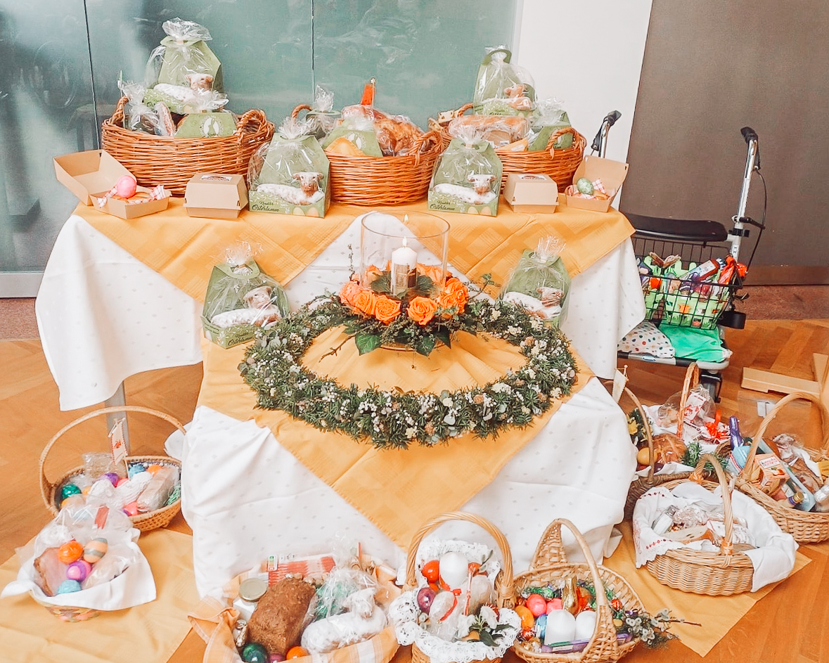 Auch der Ostersonntag wurde in feierlicher Atmosphäre begangen. Bei der traditionellen Speisenweihe wurden die liebevoll übergebenen Geschenke des FCB Fanclubs gesegnet.